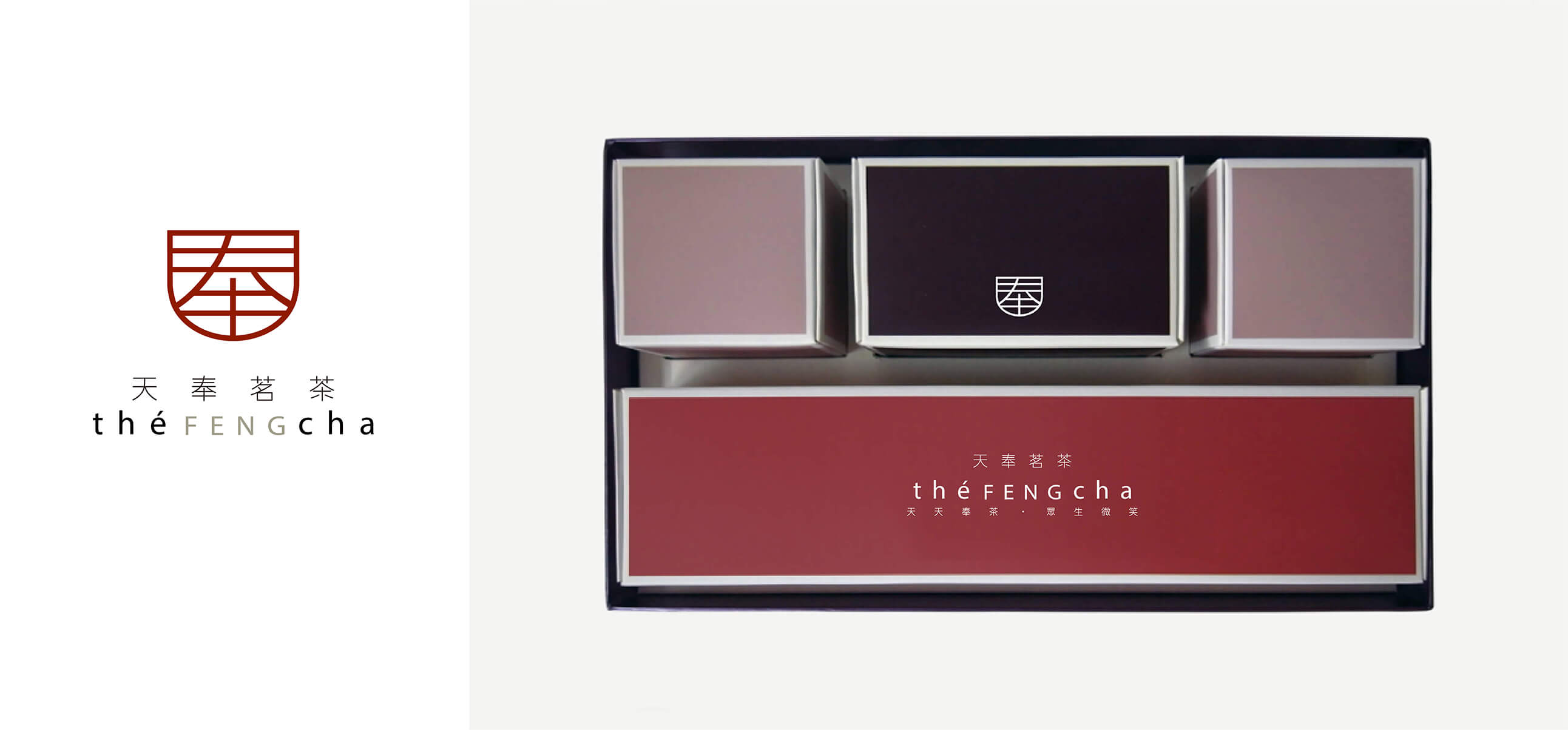 teacup with the Chinese character “奉,” visually connecting the tea industry with the brand’s meaning. Vermilion red is