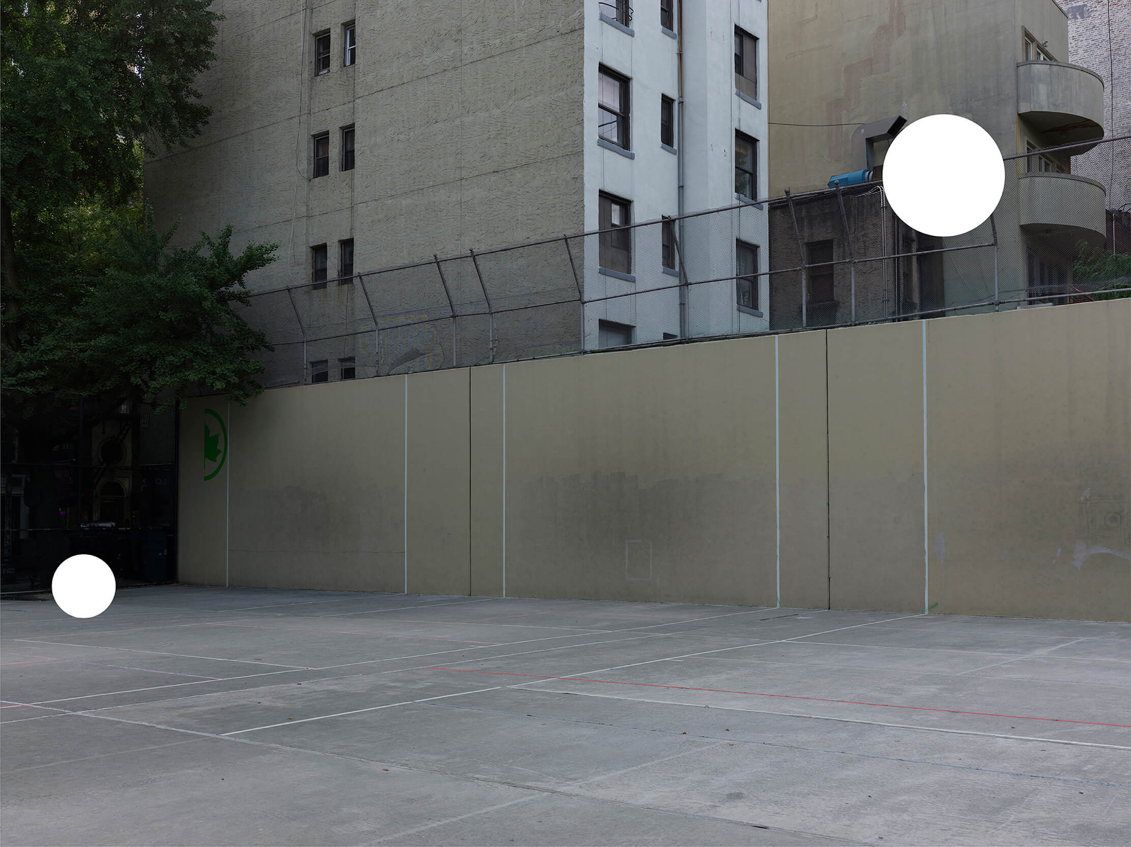 This work presents a community sports space in New York City through soft, evenly lit tones. A composition of