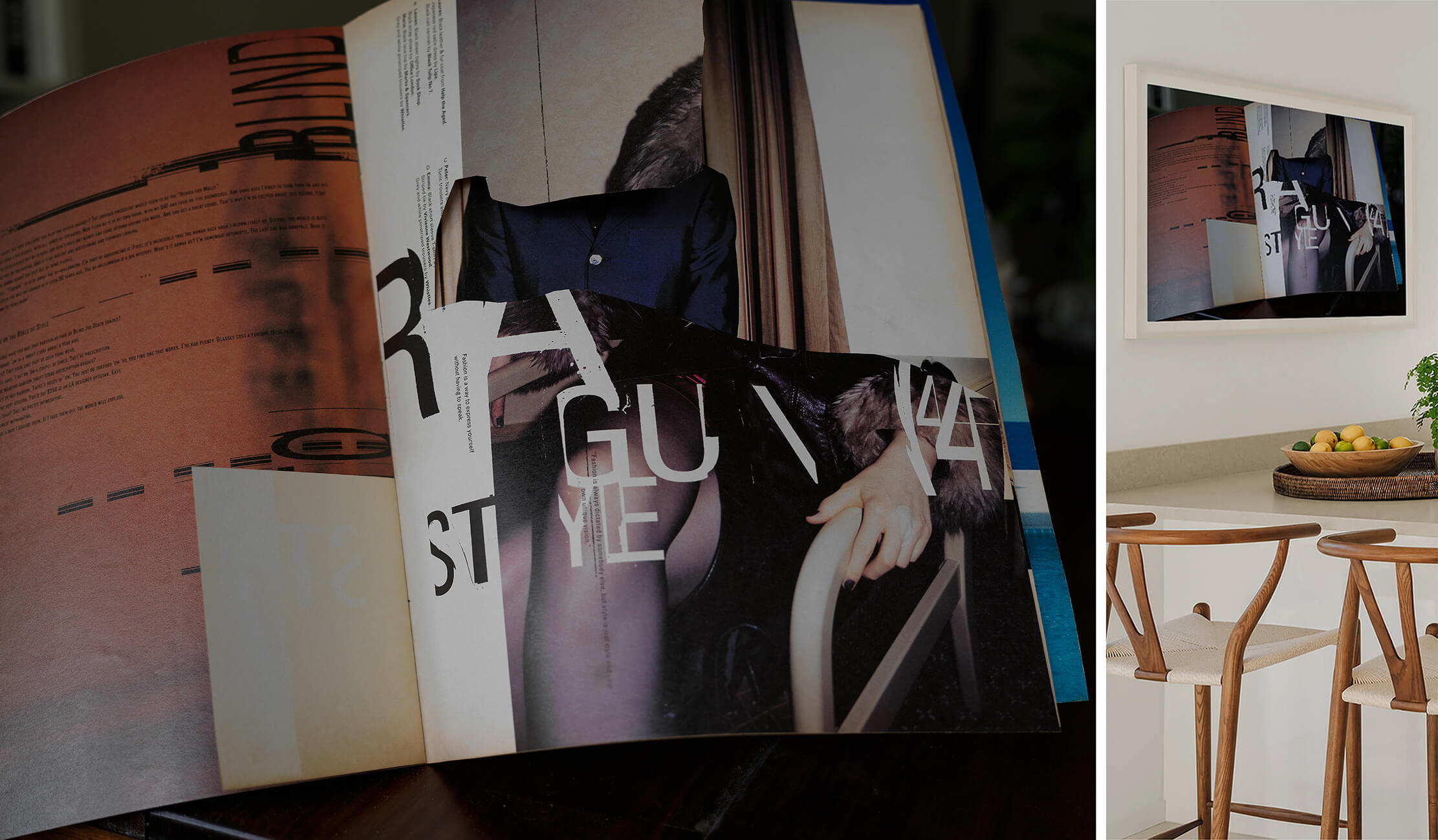 reconstructed through collage using materials of varying textures. The contrast between hand-cut collage and the
